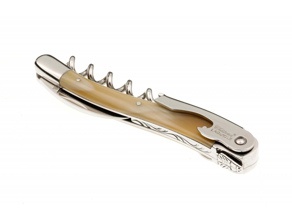 Chateau Laguiole se těší nejvyšším prodejům v kategorii vysoce kvalitních otvíráků na víno. Popularita mezi nejlepšími světovými smmeliéry z Chateau Laguiole dodnes tvoří nejprodávanější otvíráke pro profesionály. U tohoto konkrétního kusu je na madlo použit bílý roh, který otvíráku dodává na luxusu.